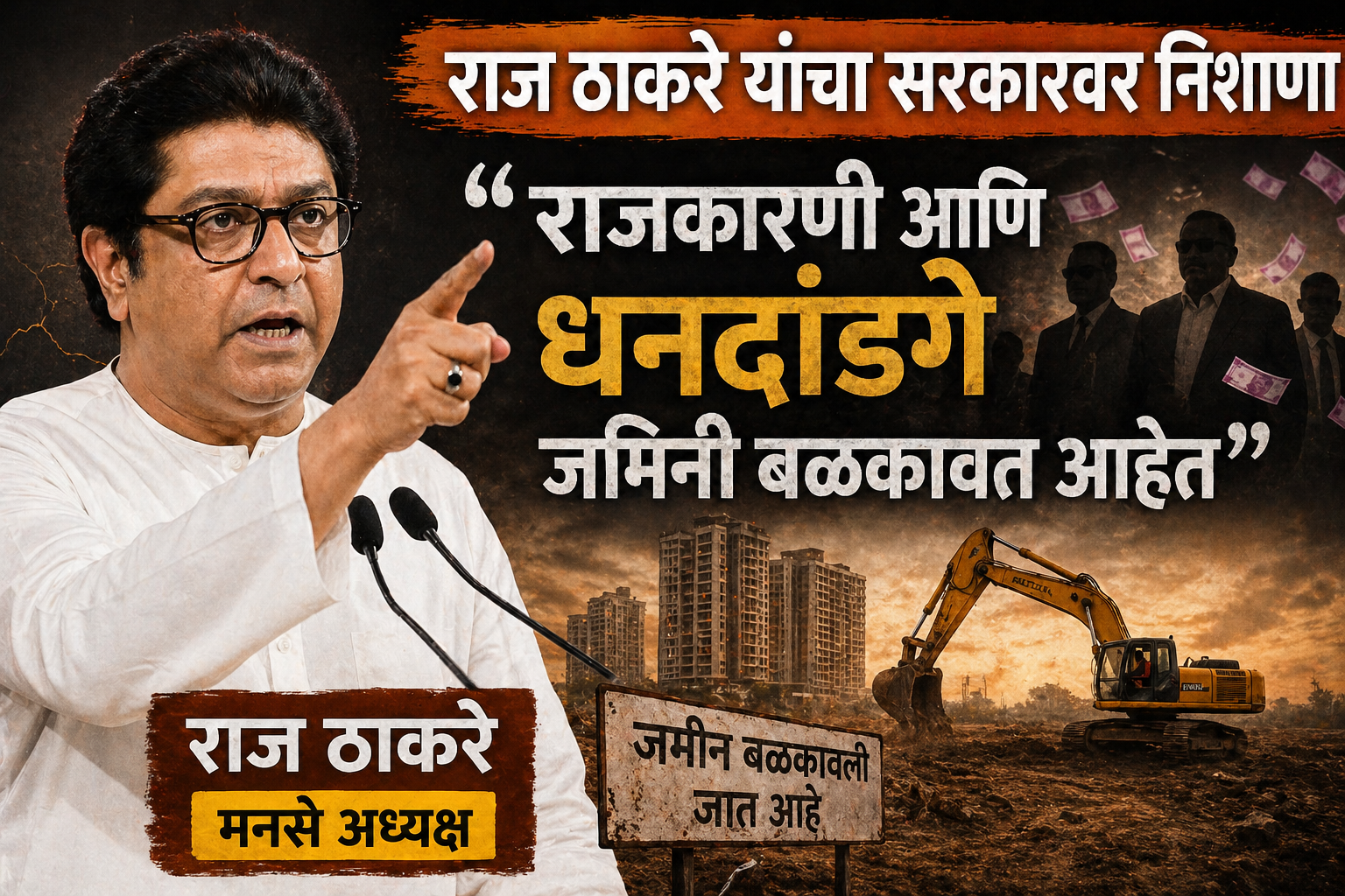 एका सार्वजनिक कार्यक्रमात बोलताना राज ठाकरे यांनी राज्यातील जमीन व्यवहार, वाढती बिल्डर लॉबी आणि राजकीय हस्तक्षेप यावर निशाणा साधला. “सामान्य माणसाची जमीन वाचवणारा कोणी नाही. राजकारणी आणि पैशाच्या जोरावर काही लोक जमिनींवर कब्जा करत आहेत,” असे त्यांनी स्पष्टपणे म्हटले.