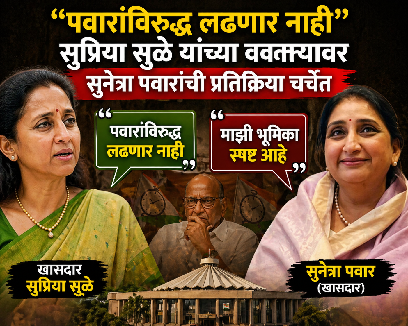 राज्यातील राजकारणात पुन्हा एकदा पवार कुटुंब चर्चेच्या केंद्रस्थानी आले आहे. खासदार सुप्रिया सुळे यांनी “मी पवार कुटुंबाविरुद्ध निवडणूक लढवणार नाही” असे वक्तव्य केल्यानंतर त्यावर उपमुख्यमंत्री अजित पवार यांच्या पत्नी सुनेत्रा पवार यांनी दिलेली प्रतिक्रिया सध्या राजकीय वर्तुळात चर्चेचा विषय ठरली आहे.